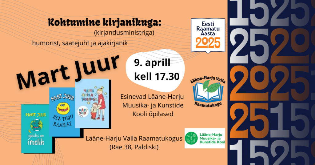 Üritus toimub Lääne-Harju Valla Raamatukogus (Rae 38, Paldiski) 9. aprillil kell 17.30.